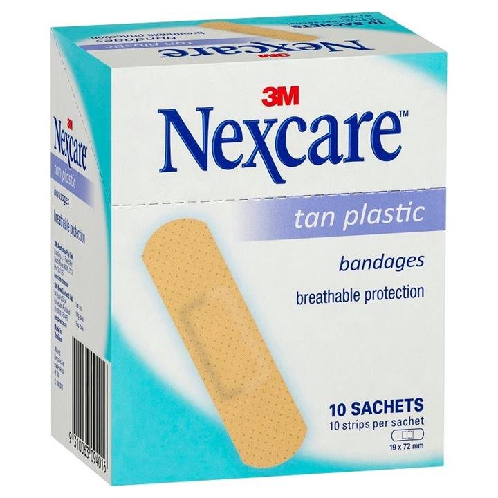 Nexcare Tan Plastic Bandage Strips 10 X (10 Sachets)