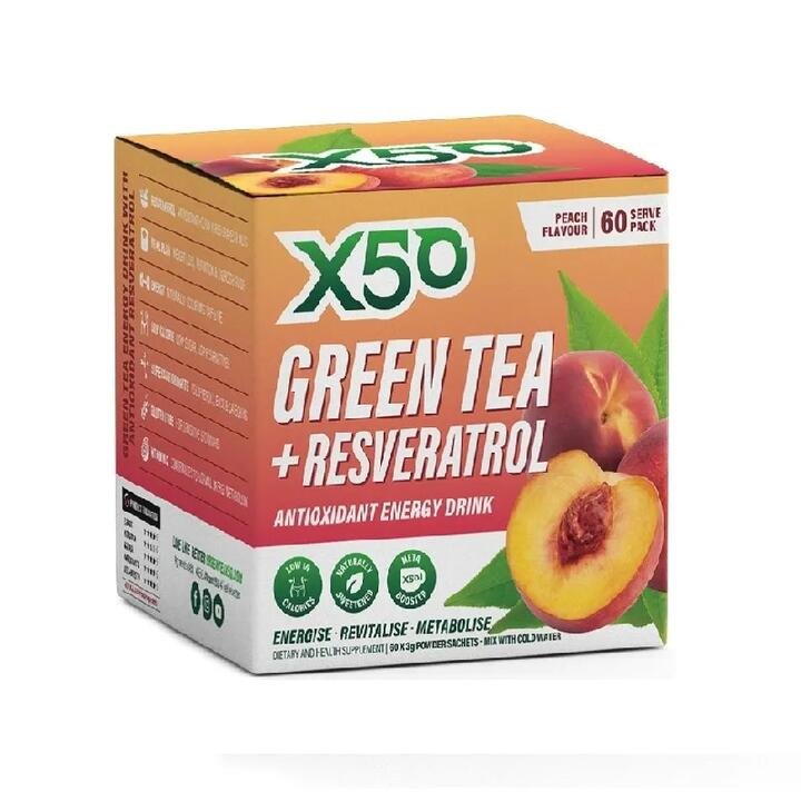 X50 Green Tea + Resveratrol Antioxidant Energy Drink Sachets (Peach) 3g X 60